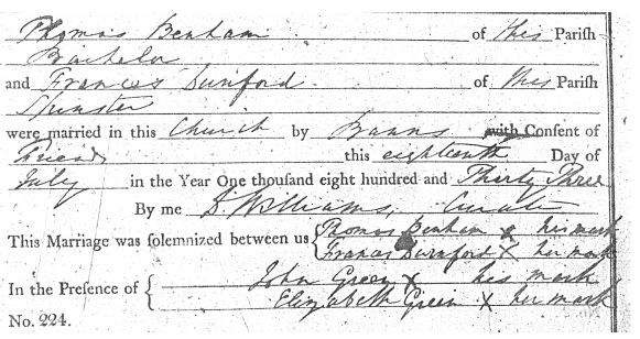 at the Church of St Mary at Overton for three successive Sundays, Fanny married Thomas