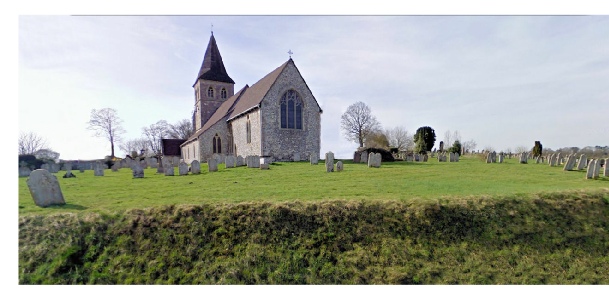 his way down White Hill to the Churchyard of St Mary’s Church at Overton (shown on