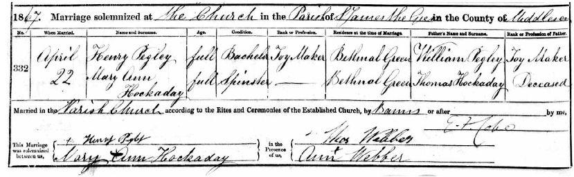 a toy maker from St Luke’s living in Bethnal Green. Mary Ann married him on 22 April
