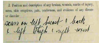 attests that she was ‘clean’ and her bodily condition ‘fair’, but she had ‘scars
